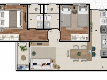 Apartamento à Venda com 2 dormitórios, sendo 1 suíte, 56m²